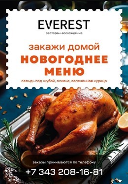 Ресторан «Everest» расположился в центре Екатеринбурга по адресу: ул. Горького 69/1. Часы работы: вс-чт с 12:00 до 23:00, пт-сб с 12:00 до 24:00.